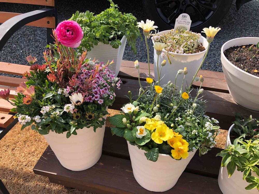 今日は先週寄せ植えにしたラナンキュラスやローダンセマムです。斑入りのサザンクロスがカッコよくてお気に入りです。