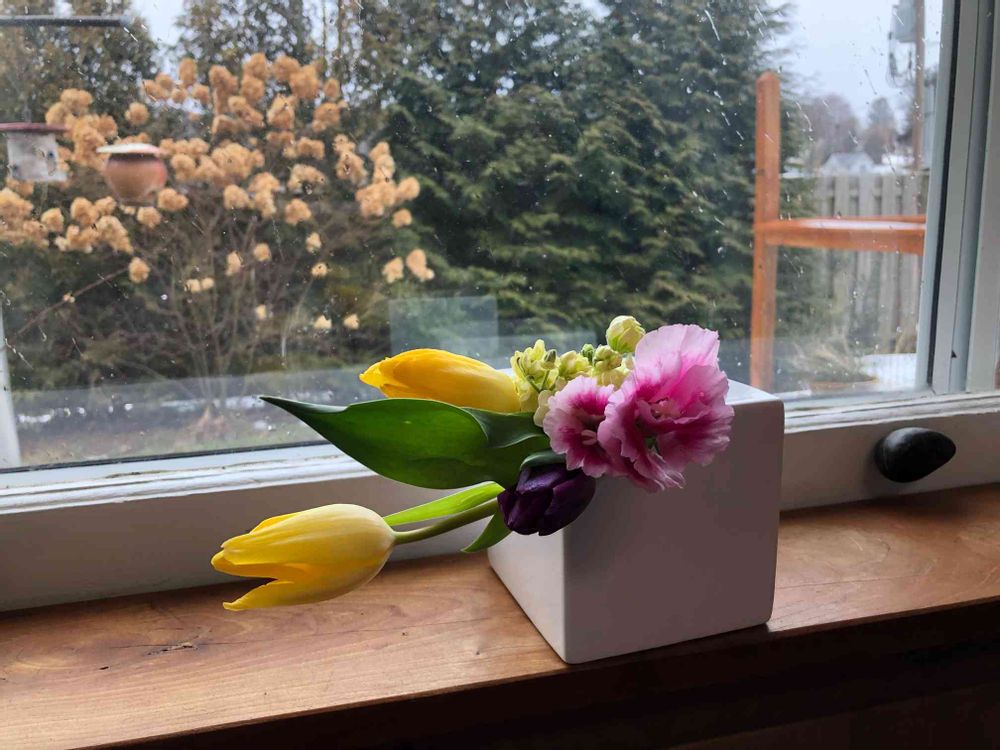 自分の生けたお花、どれも好きですが、もし一枚しか選べないなら、3番が私のチョイスです😆💕理由は、チューリップを生けるのに今日の長さがベスト、今を表現できたからです。