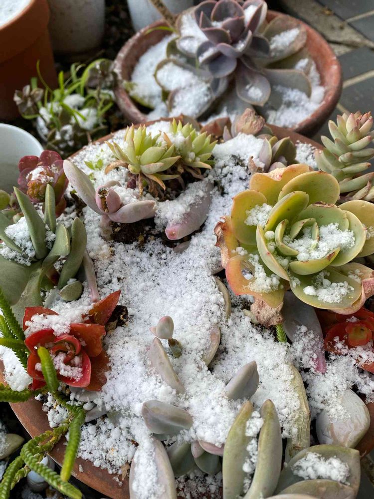 雪は朝ちょっと積もっただけで多肉は大丈夫でした😊