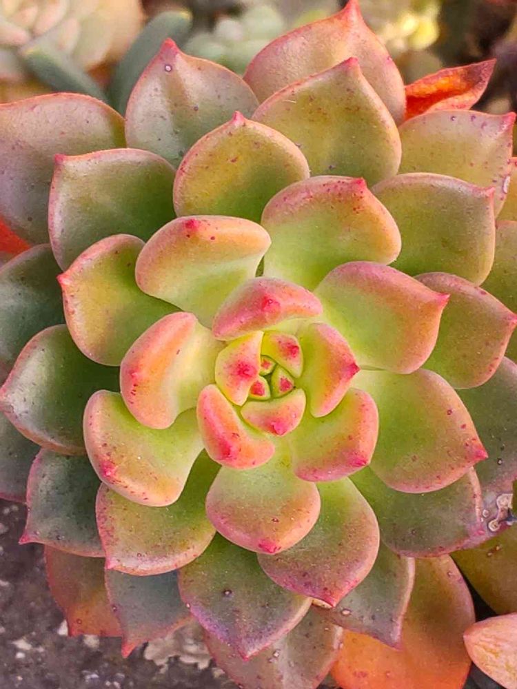 今日はお外の北側花壇の エケベリア・ロンエバンスさん😻💚💛🧡