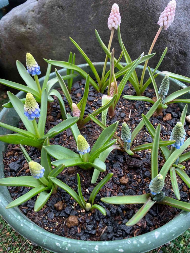 うちにも、あかりさんと同じで葉っぱがビヨ〜ンと伸びて未だに花芽が上がってこないムスカリさん達もいますよ〰️〰️〰️😂