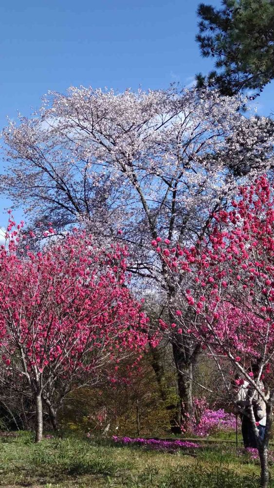 ここは花桃と芝桜が綺麗な公園なんですが、ちょうど行った時は桜もツツジもいっぺんに咲いててホントに綺麗でした🌸💮🌺