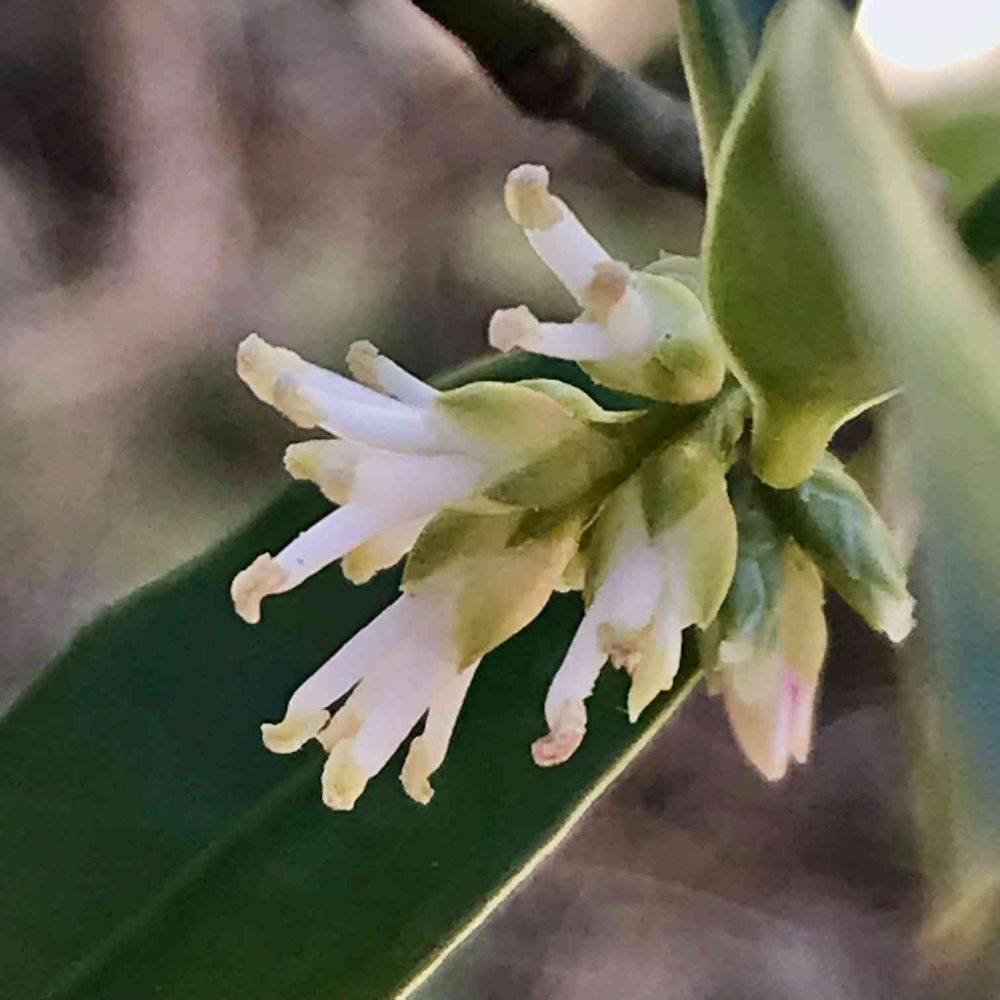 サルココッカのちっちゃな白いお花がいつの間にか咲いていました(ღ˘⌣˘)♫