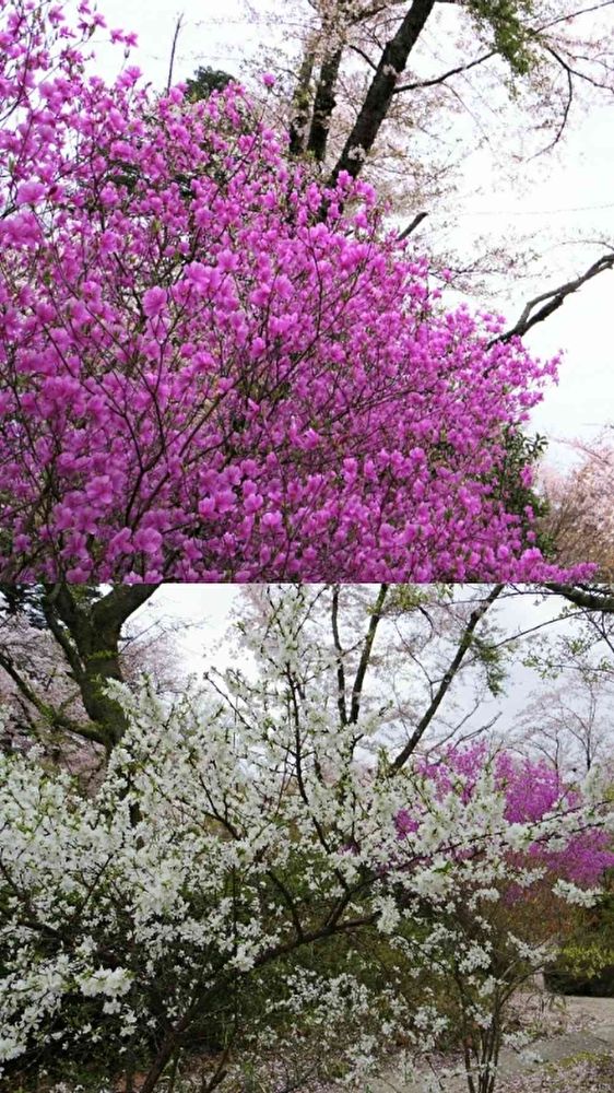 アップでないので良く分かりませんが、ピンクの方はミツバツツジのように見えますね🎵