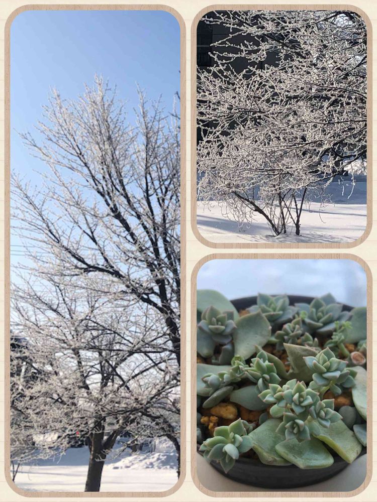 今朝は久々に冷え込んで、木に氷の華が咲いてました❄️