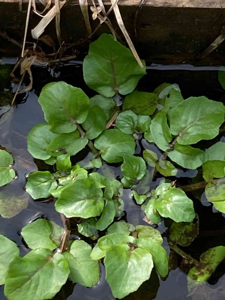 初夏に菖蒲が咲くエリアに美味しそうな葉っぱがいっぱい❣️Google先生によるとオランダ辛子、初めて見る植物?って思ったけど、クレソンのことでした。