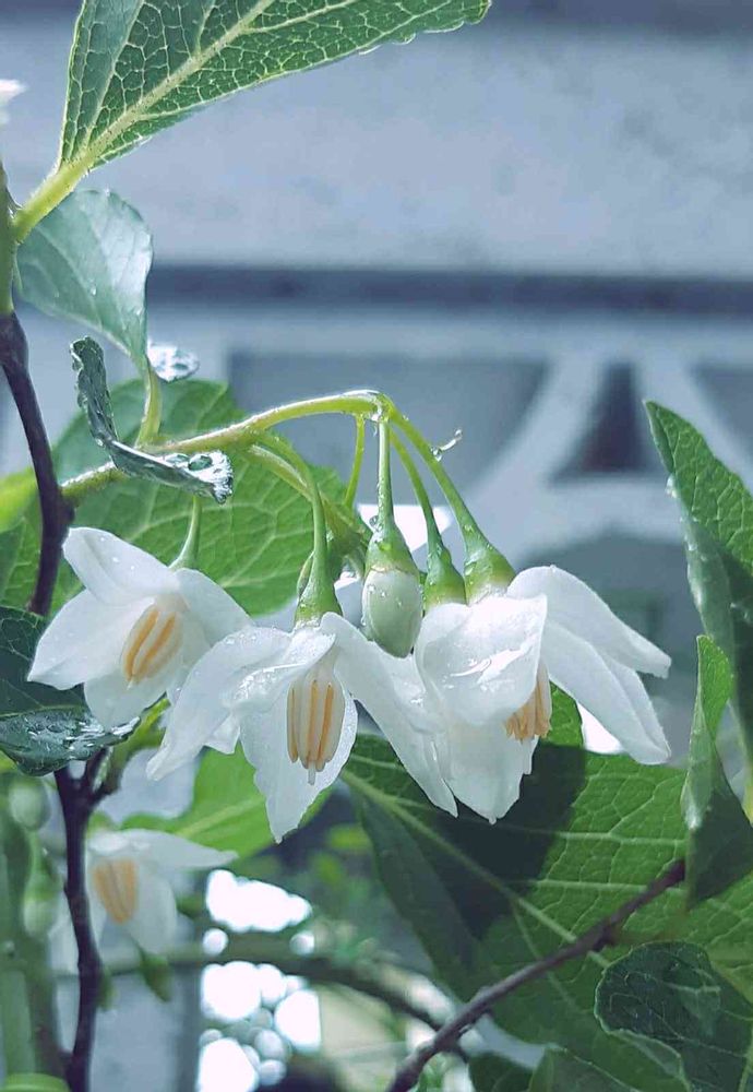 昨年買った、鉢植えのエゴノキに花がつきました♪