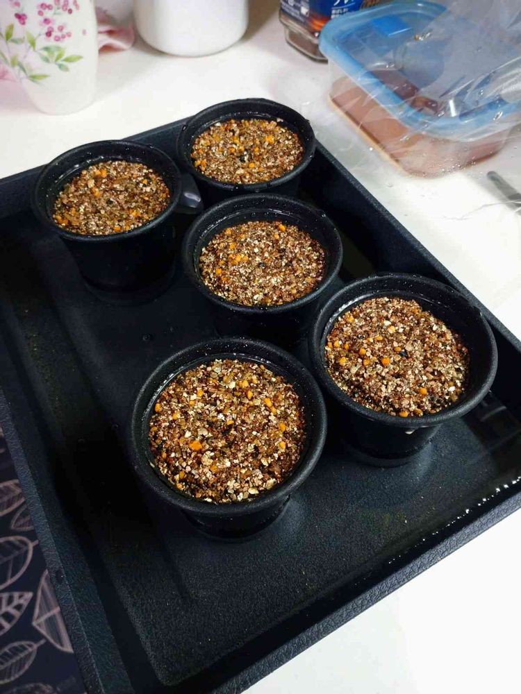 恥ずかしいけど、5粒の種を一鉢に一個ずつです😂