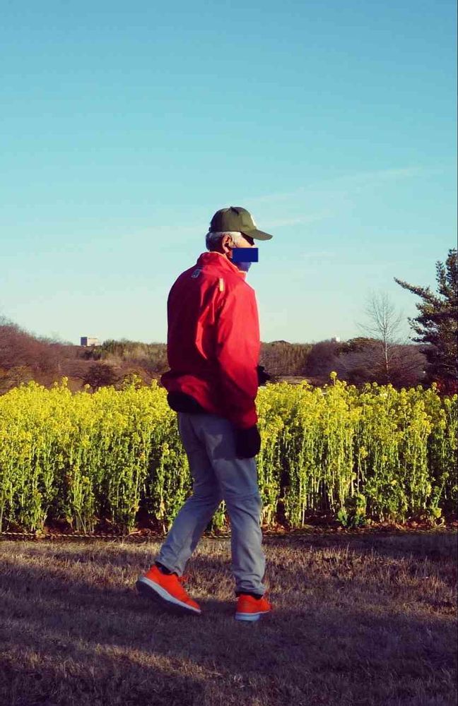 菜の花畑を愉しむ たそがれ爺😚(夕刻だし)