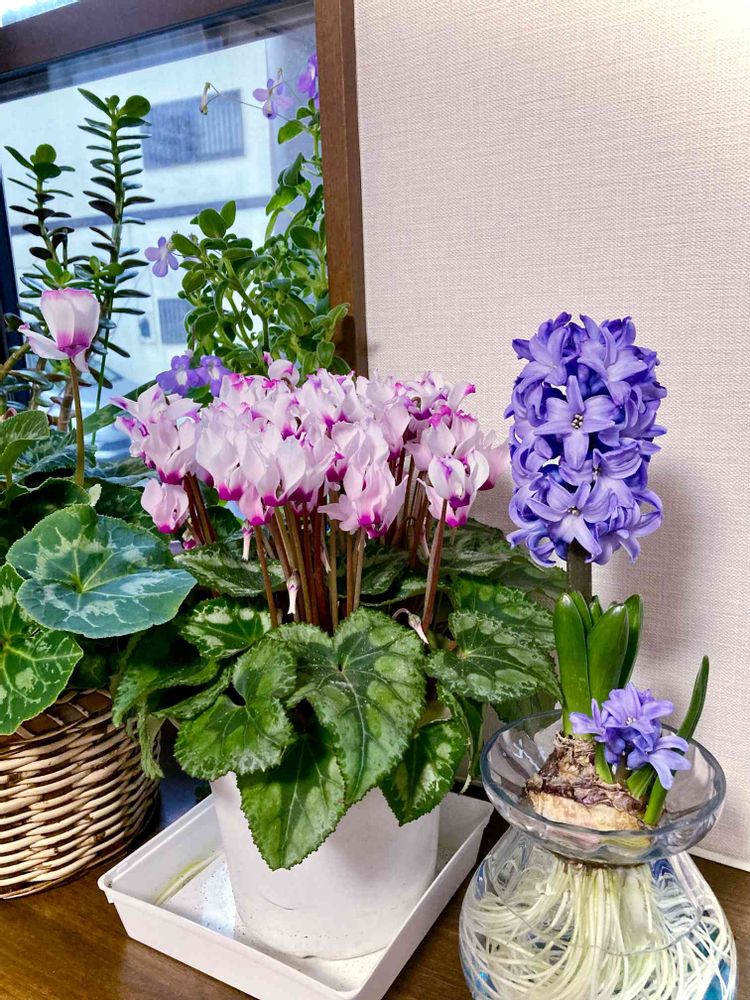 窓辺,ヒヤシンス 水耕栽培,ガーデンシクラメン・オリガミの投稿画像
