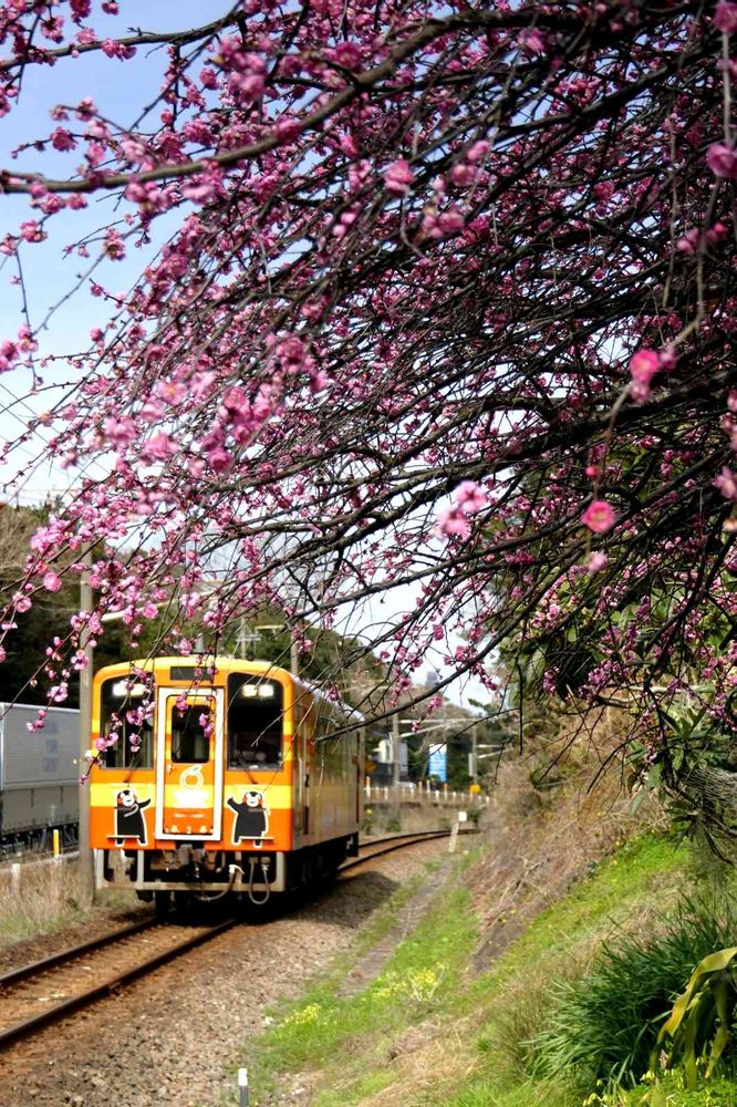 肥薩おれんじ鉄道沿線の垂れウメです🎵