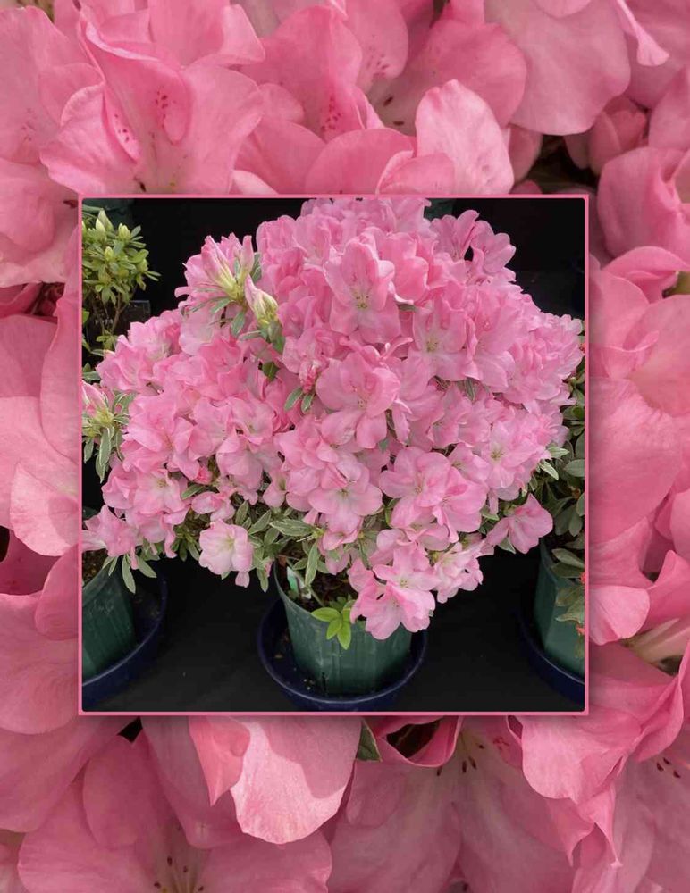 アジア原産のツツジがヨーロッパで品種改良されたもので、別名“西洋ツツジ”とも言われます。八重咲きのものが多く、色はピンク、赤、白、複色、絞りなどバラエティに富んでいます。