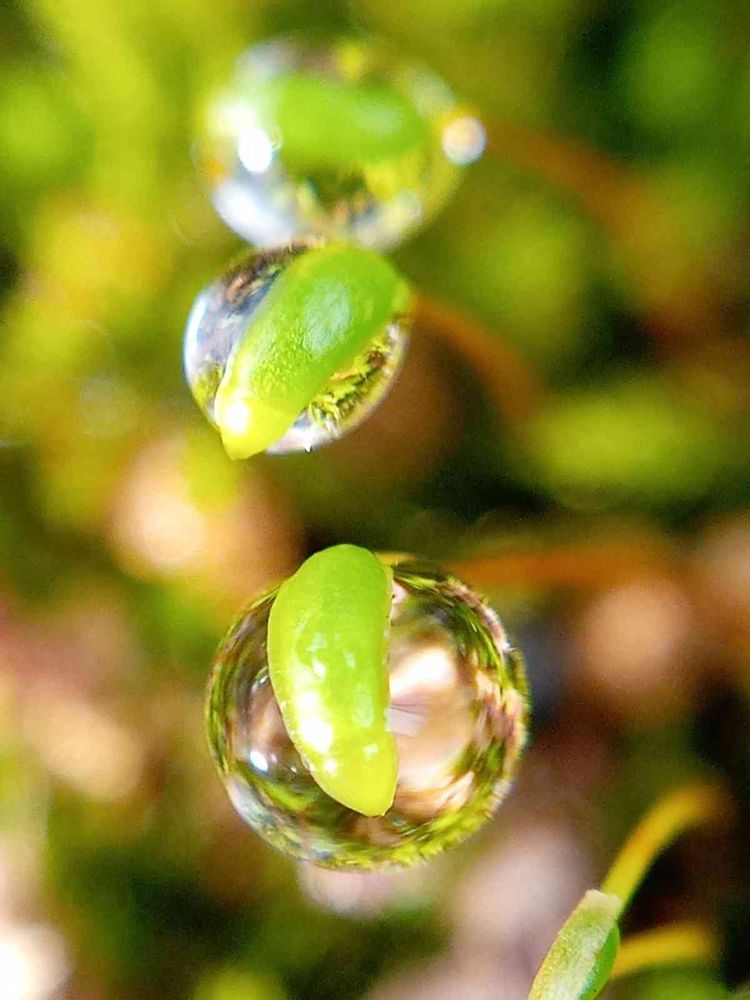 今朝の雨上がり後の苔達にキラキラ✨帽子!(*˘︶˘*).。.:*♡