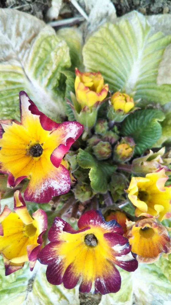 花壇に地植えしてます🍃寒すぎて葉の周りはカリカリです😂でも花は頑張って咲いてますよ💛💗🤗乁༼☯‿☯✿༽ㄏ