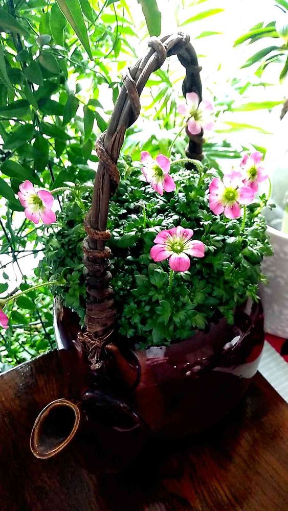 急須鉢に入った雲間草、とっても素敵ですね❣️✨✨