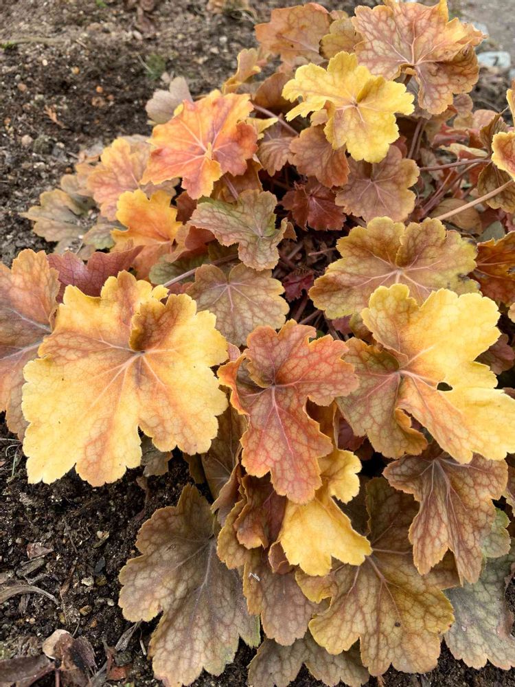 冬越し中のヒューケラ💛寒さでイエローカラーも強くなり彩り寂しい庭で暖かみを感じます🌿💛