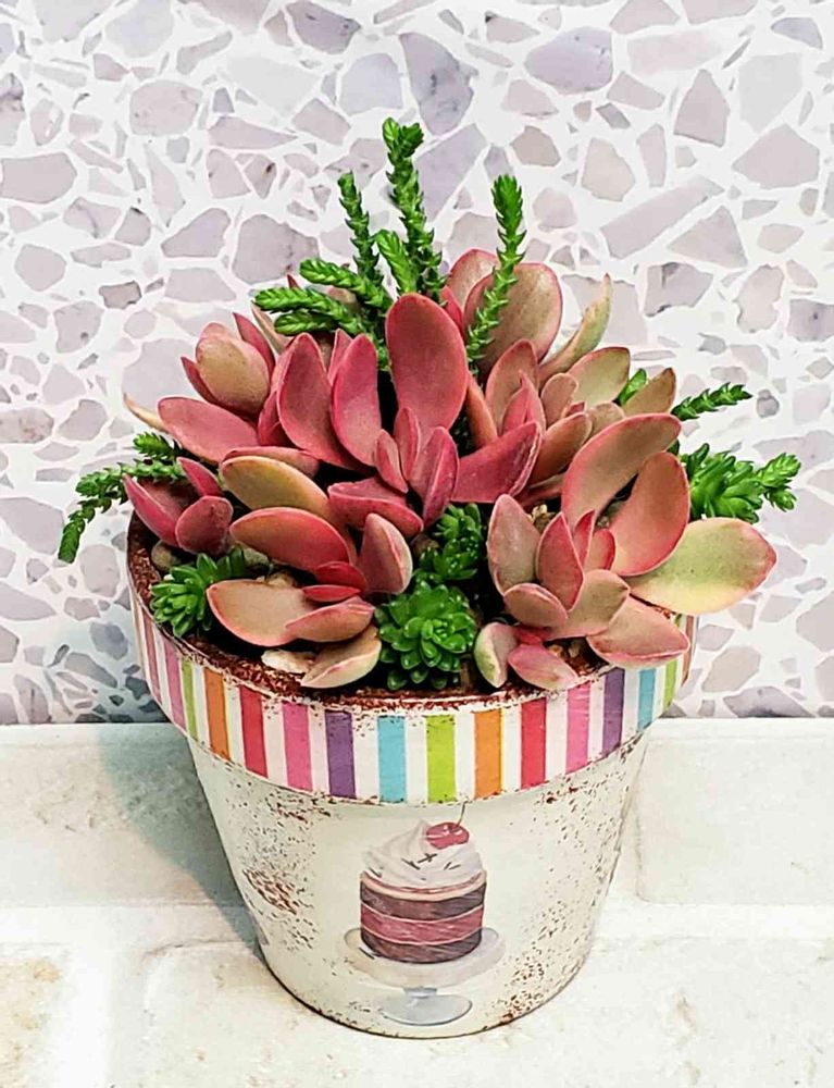 外置きの寄せ植えに入っていたマネーメーカー、綺麗な色になってきたのですが、周りの多肉ちゃんが寒さで弱ってしまったので、✂️して寄せ直しました。🎶