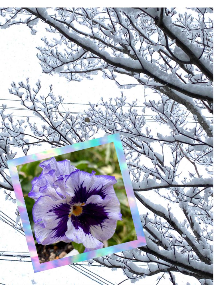 降り積もった雪とフリフリパンジー🟣