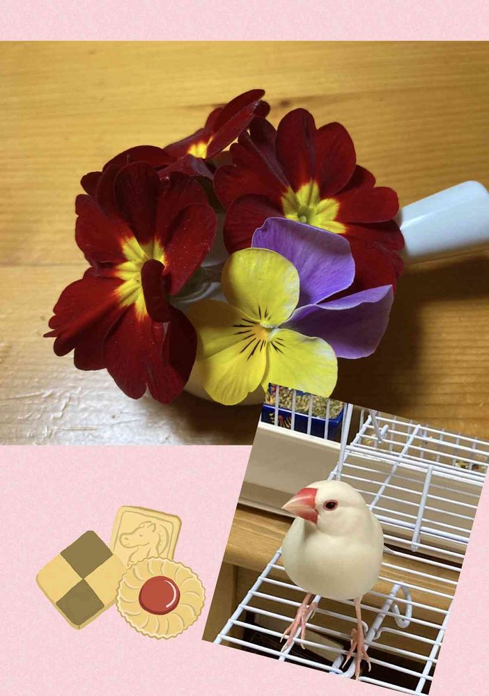 ビオラさんもキレイですが 文鳥さん生きていますか?すごくお肌が綺麗に見えます😁