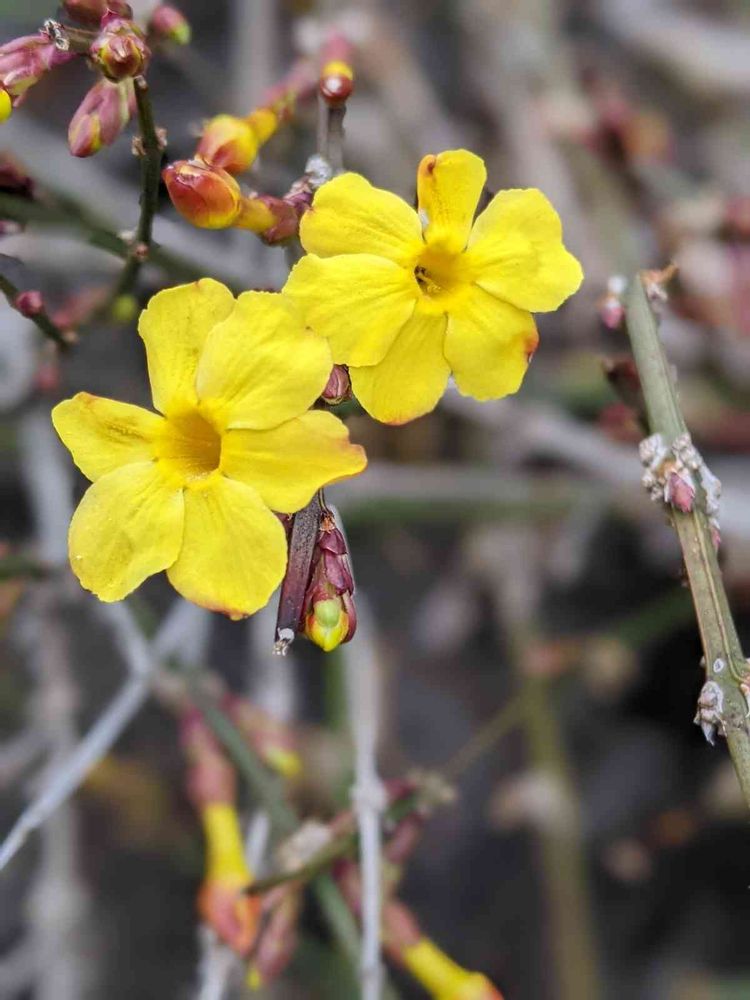 オウバイ、迎春花、ともいう新春の花ですが、今年は遅いんです😅