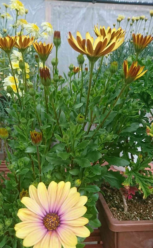 簡易ビニール温室にお迎えしてる オステオスペルマムさんと マーガレットさんです🤗💕