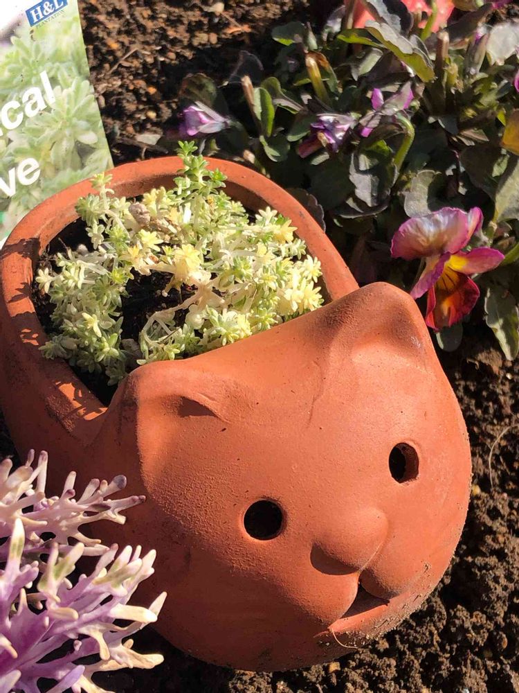 猫のポット🐈にセダム “ミルクゥージ“🌿