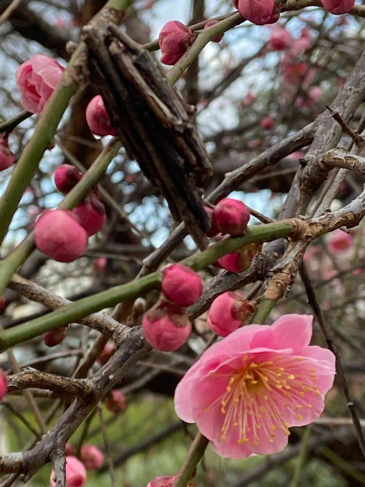 くるみんさんのお出かけ先,枝垂れ梅とミノムシ,コロナの早い終息を!!の投稿画像