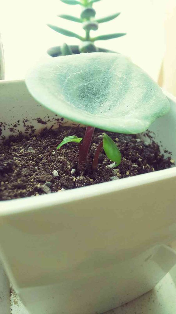このまま成長したら、親の葉にぶつかっちゃうよね?どうなるのか見守ります💦