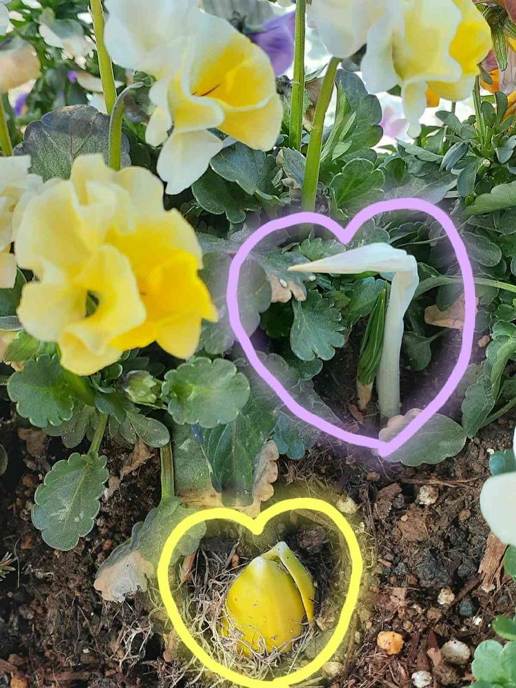 ちゃん、💛は太くてヒアシンスっぽいし、💜はスリムで確かにクロッカスっぽいけど、クロッカス植えた?😆
