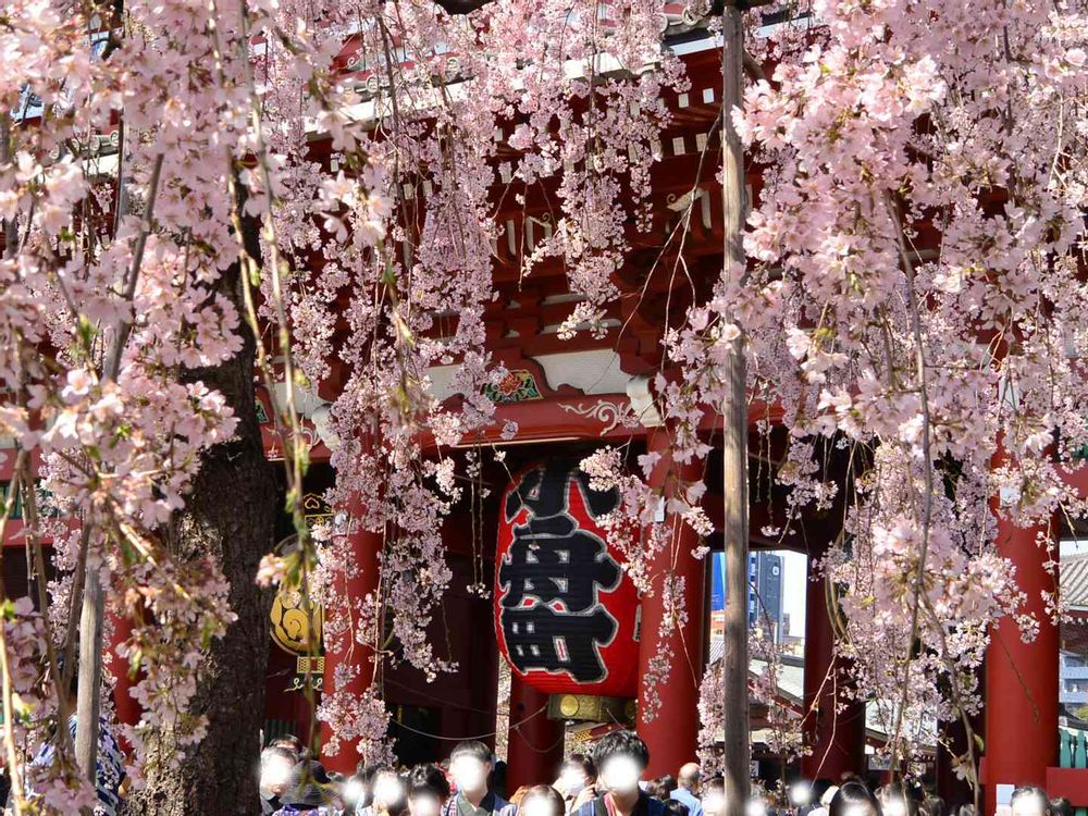 浅草寺の枝垂れ桜、満開。