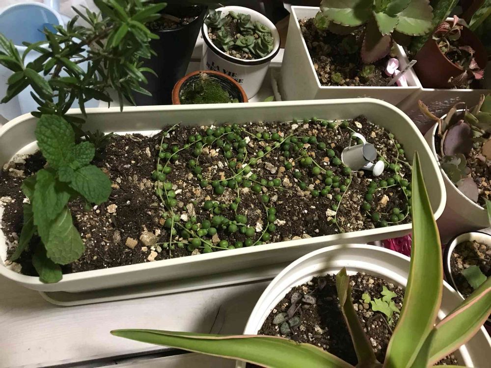 グリネさん、大きめプランターに植え替えました〜✨これで根が出ても、根付いてチョッキンしちゃえば簡単に分けられる♡うまくいきますように。。。