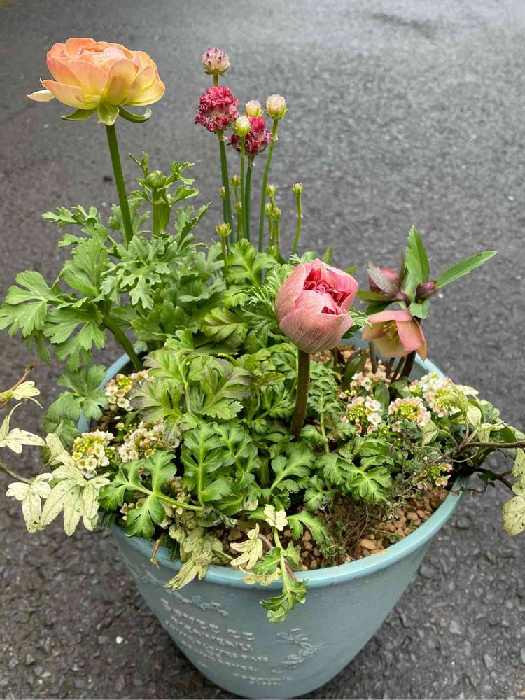今日は、アネモネ・アンアリスを使った寄せ植えを作りました。