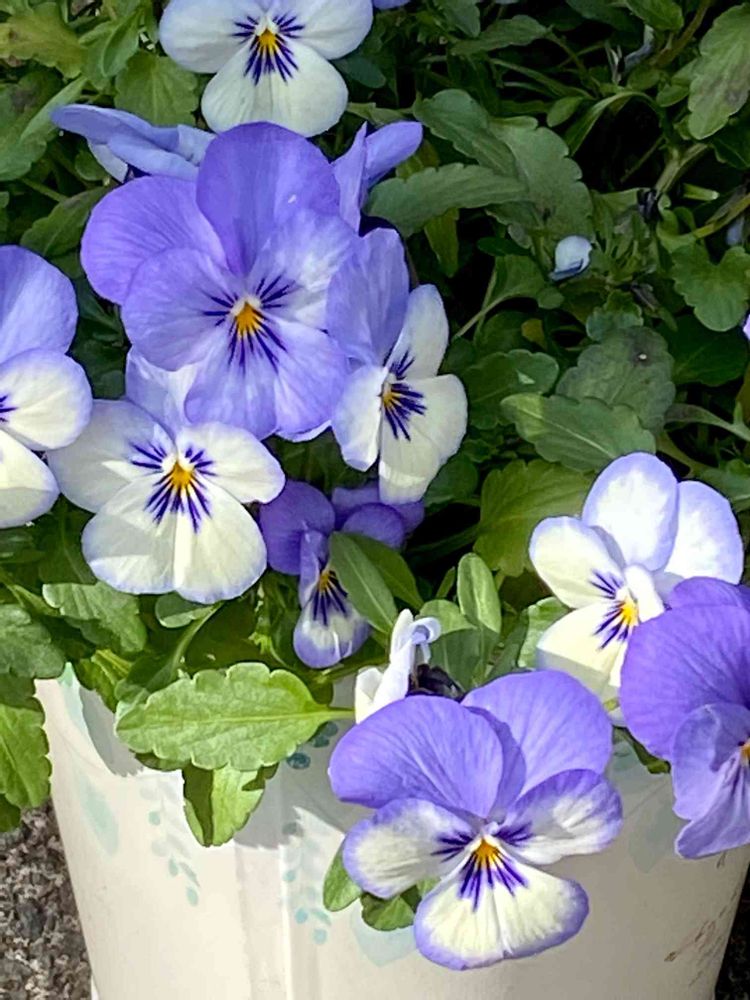 昨秋、近所の店先で最初に買ったビオラで、花色が白から薄紫に変化するタイプ