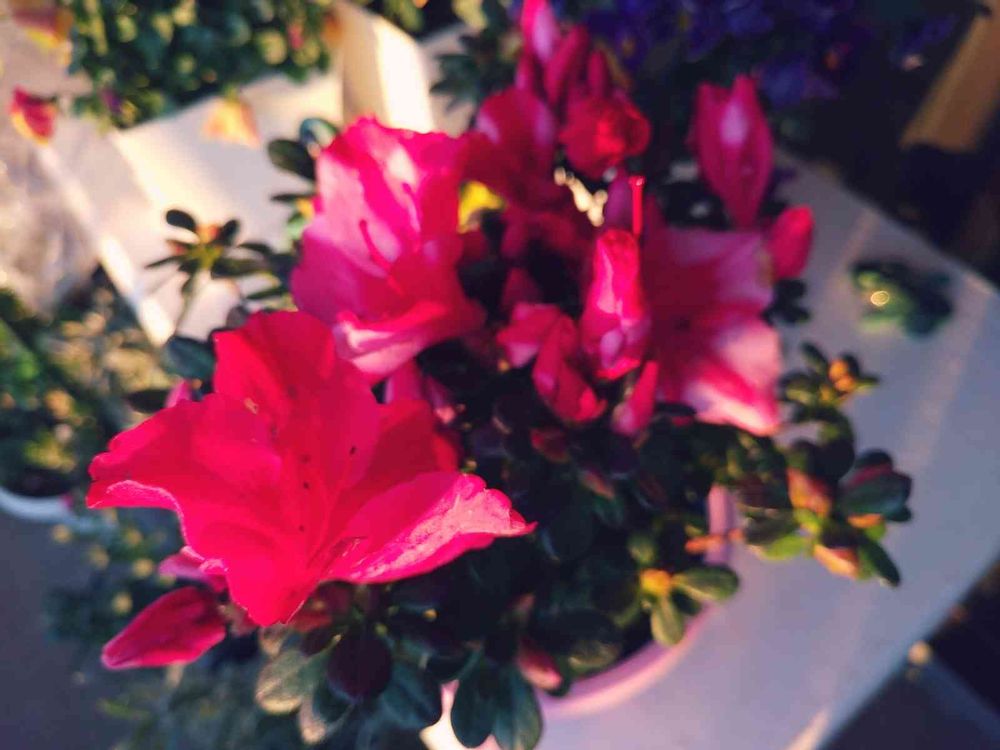 昨日、この鮮やかなピンクと赤に見惚れてしまい、躑躅に手が伸びてしまいました😀。
