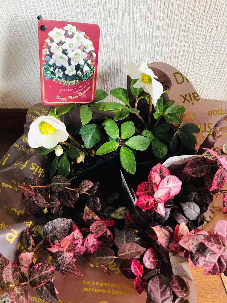 値下品のクリスマスローズとハツユキカヅラを家に有ったカゴに寄せ植えしました🥰
