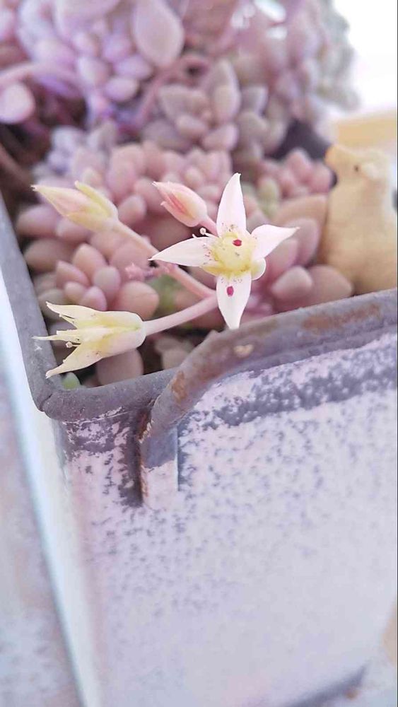 多肉植物に花が咲いてる写真とか見て、憧れてましたが、昔、十二の巻に花が咲いて以来見たことがなかった。