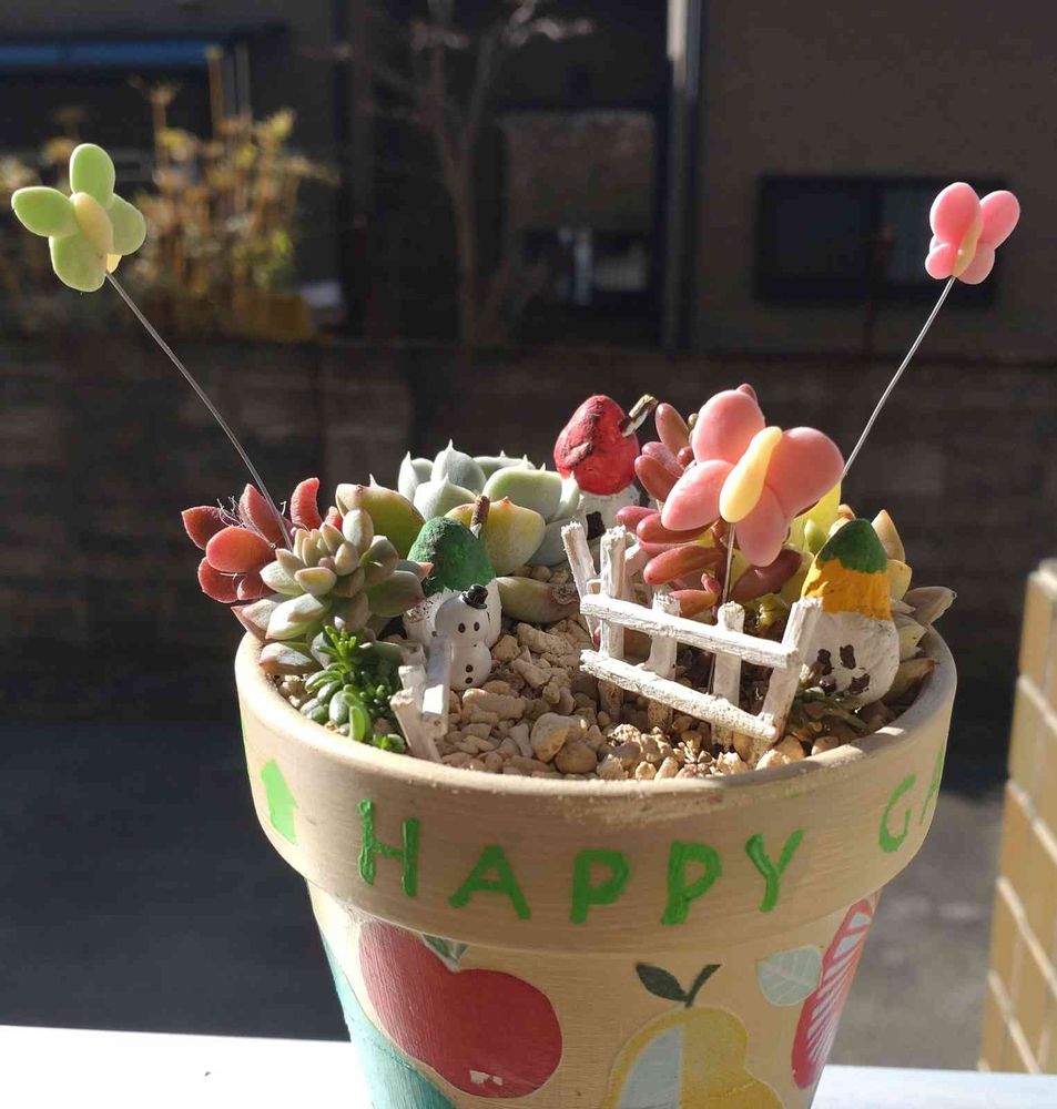 春に向けて蝶のピックを作ってみました🦋多肉の良さが引き立たない写真になってしまった😅