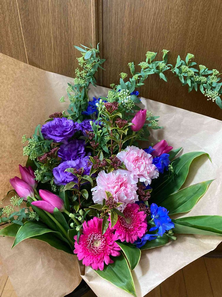 なかなか、花束はもらう機会が少なく私も母の日にムスメからと前の会社を辞めるときにもらったくらいです☺️