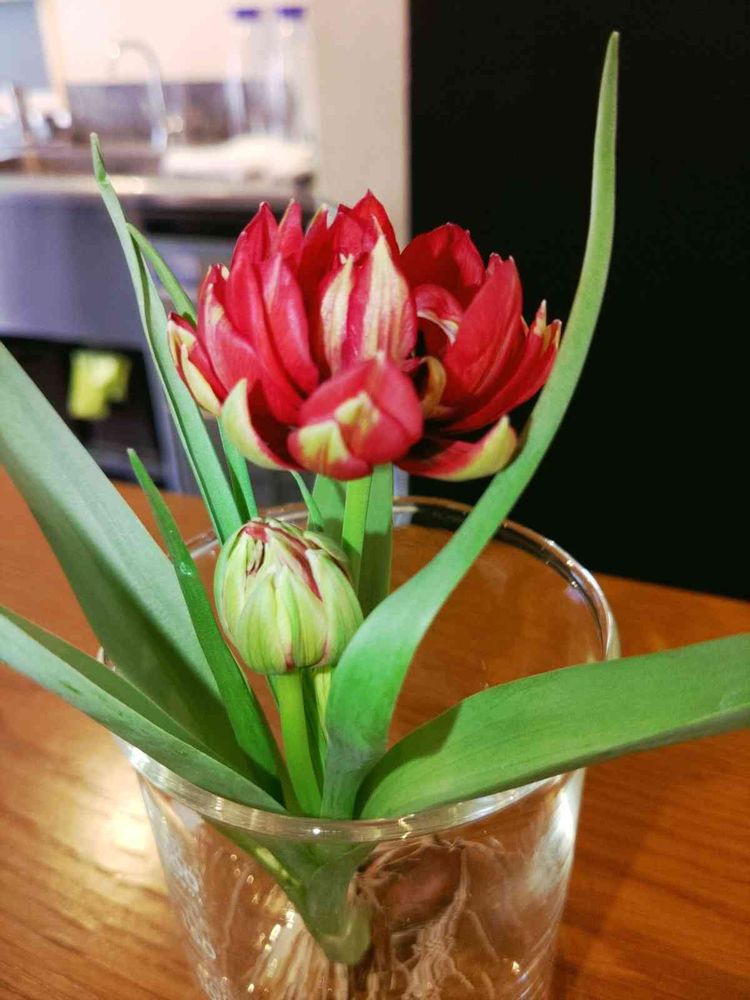 喫茶店で見つけたチューリップ。なんて名前のチューリップなんだろう