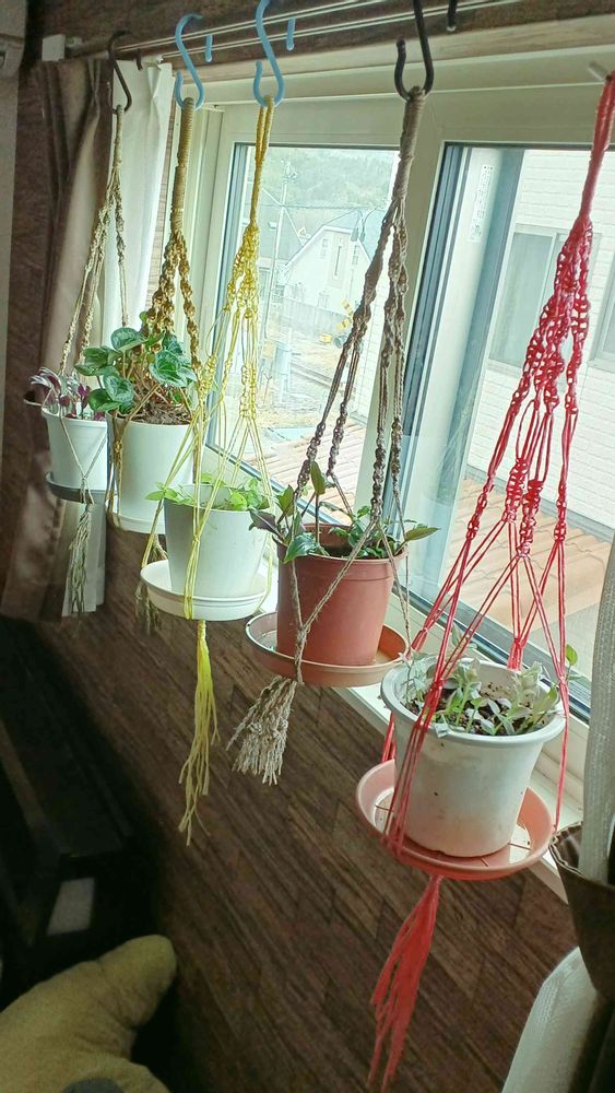 自作のプラントハンガーのトラデスカンチア4種💖寝室。