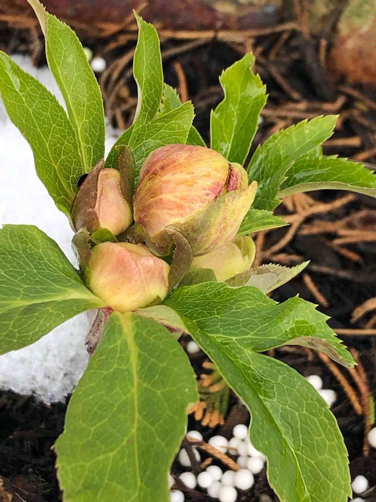元気なクリスマスローズに驚いています。雪の中の方が暖かい…そうですよね(-ω-` )ナルホド
