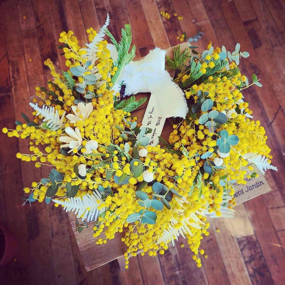 ミモザで自己流ですがリースにチャレンジしたいと思っています😃