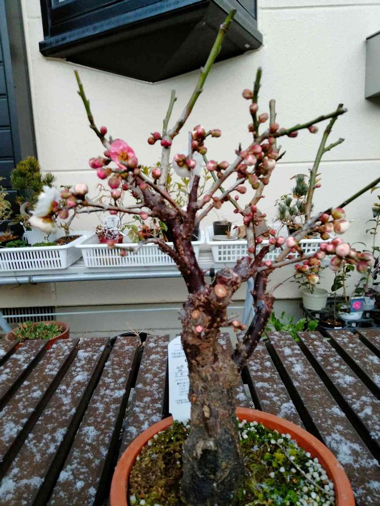 この梅の鉢植え?が、昨秋の樹形を整えるため切り込みを入れたのですか