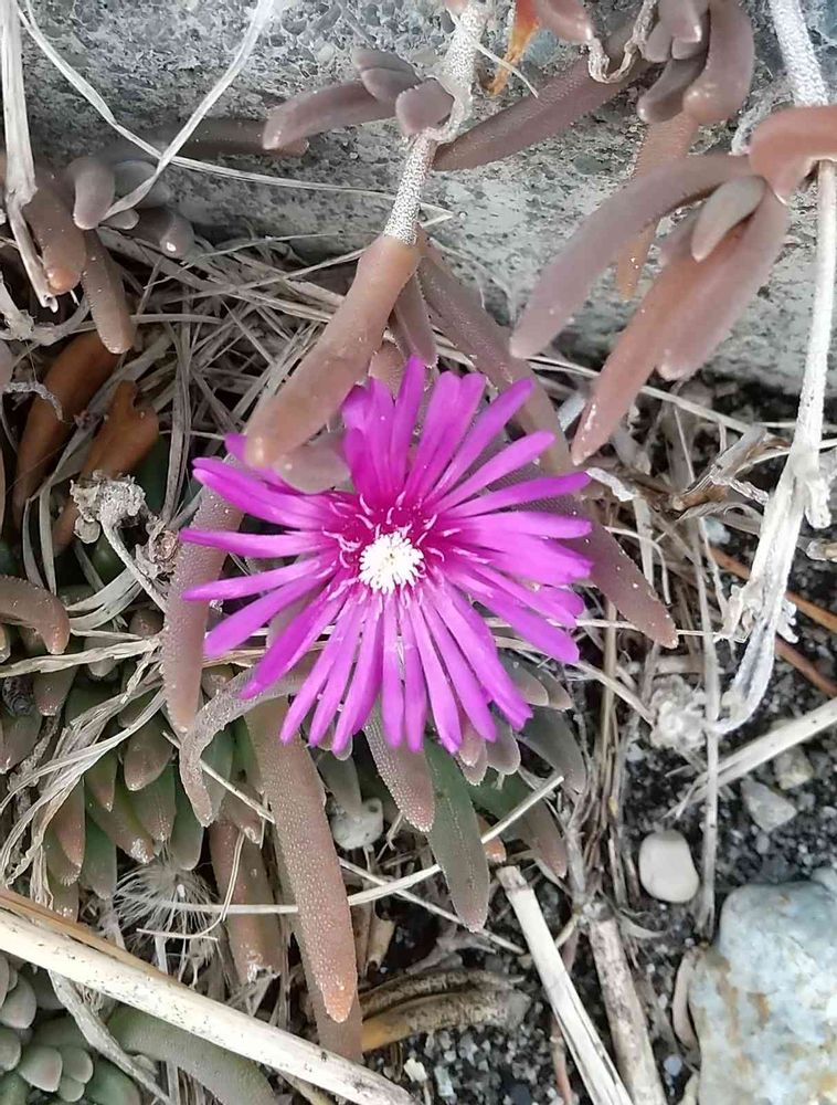 夏のお花がこんなに寒のに、浜辺の公園にひとつだけ咲いていました。