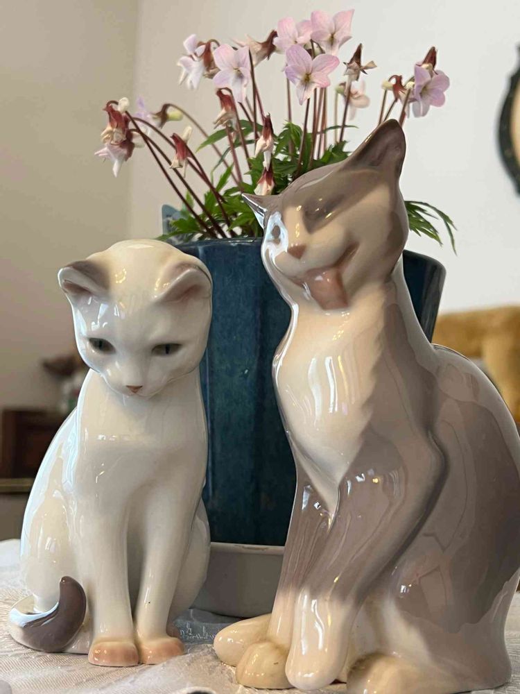 生ネコはいないのでGS二度目の登場の磁器ネコと薄紅肥後菫のコラボ💕