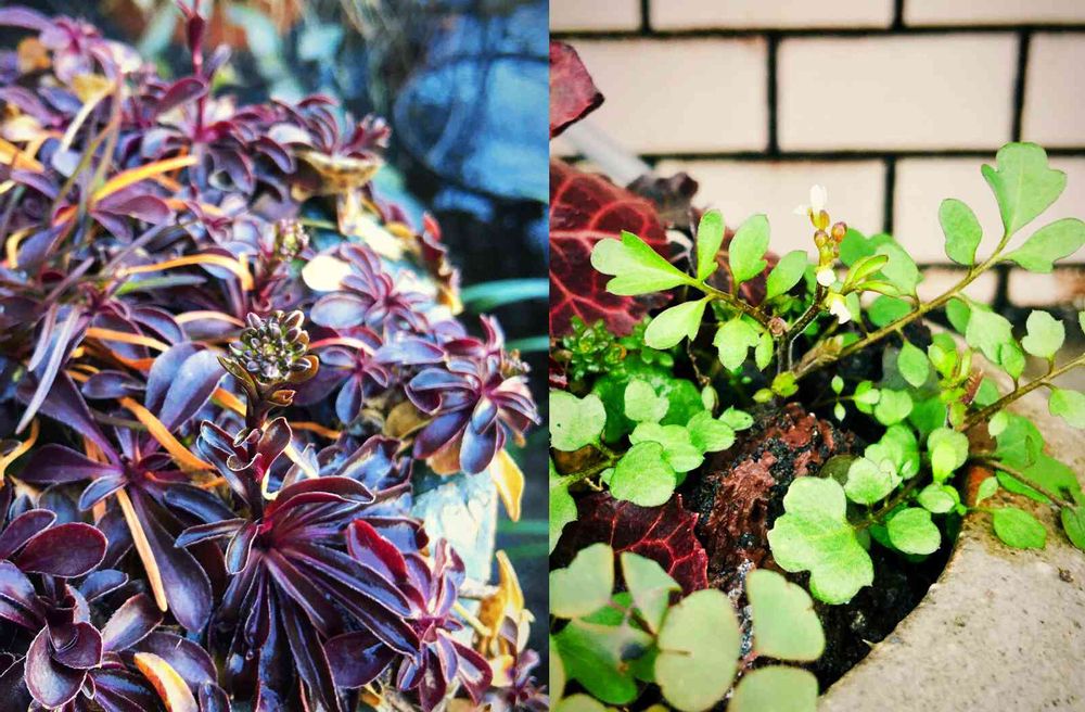 右は名もないナズナ、ペンペングサ。イワウチワの鉢に生えています。なんだかおしそう🤤です。