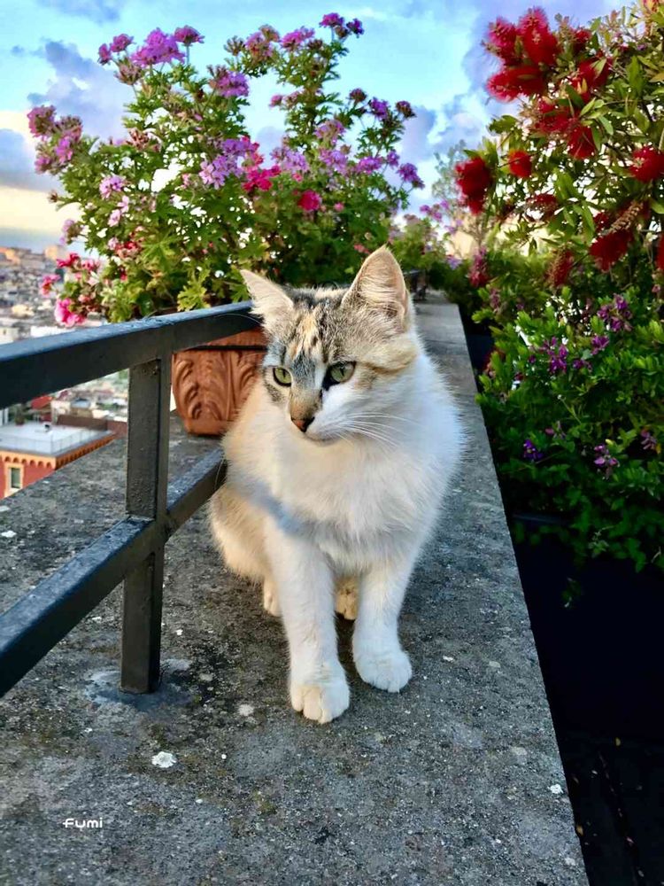 プール付きの屋上庭園で、3日間、毎朝迎えてくれた甘えん坊の猫