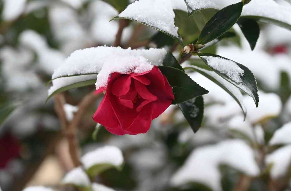 真っ赤な”雪山茶花”可愛いいですね❄️