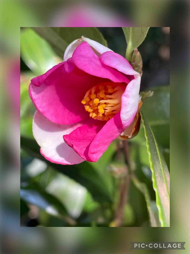 この椿は,ピンクと白の花びらが交互に並んでいたので、「夢」ではないかと