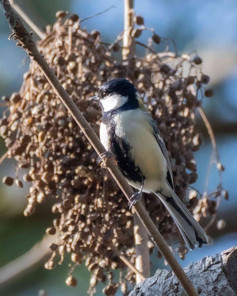 シジュウカラ君、ハゼノキの種を食べ放題?種の隙間の小動物を啄む?